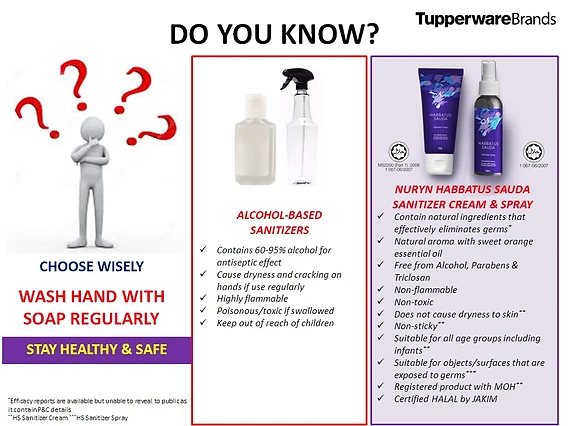 10) What is the main difference between alcohol-based Sanitizer and Nuryn Habbatus Sauda Sanitizer?